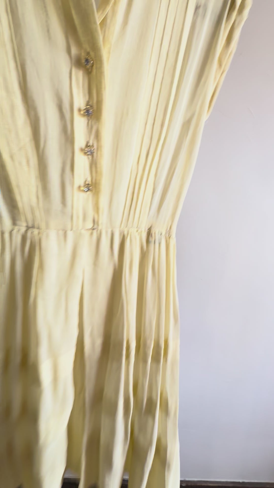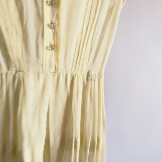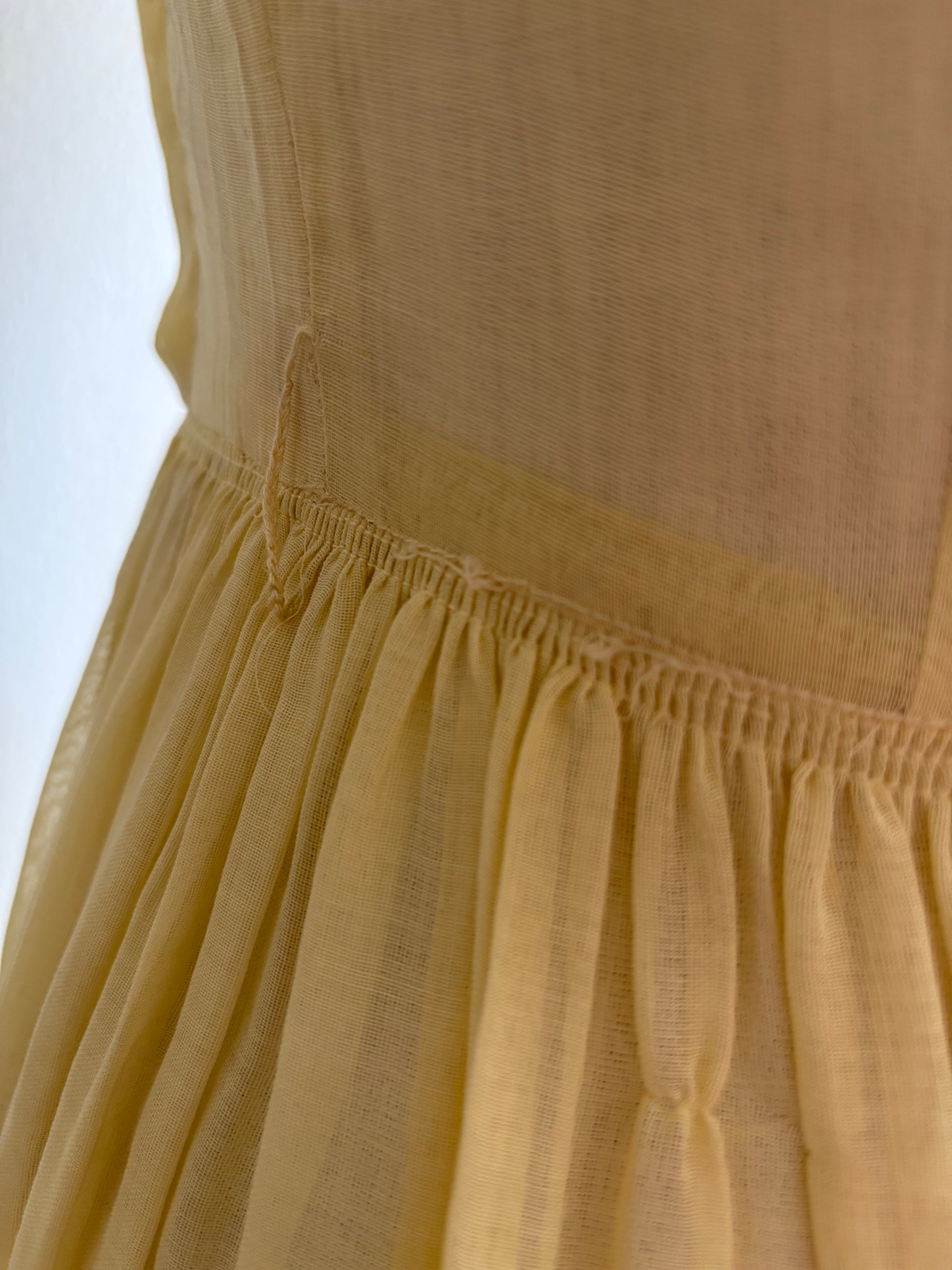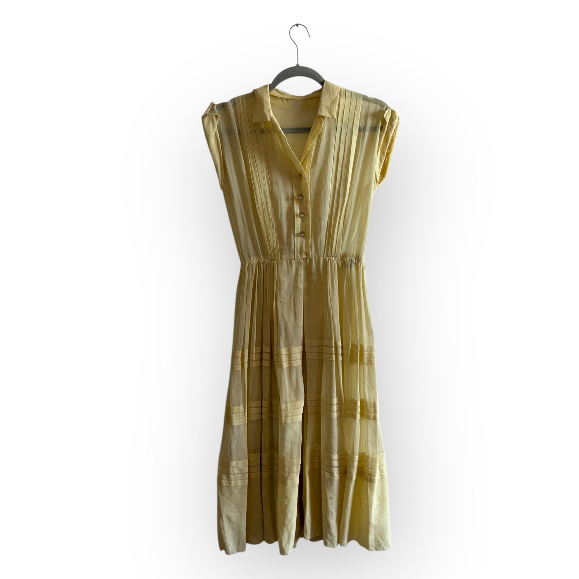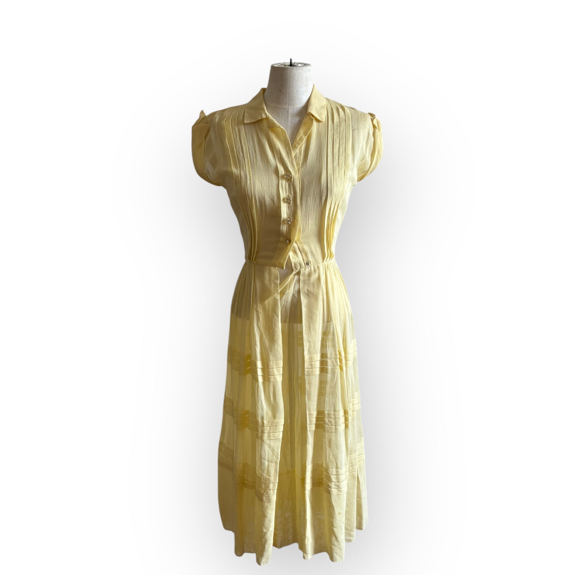 Vintage 1930s Sheer Cotton Pale Yellow Pleated Dress