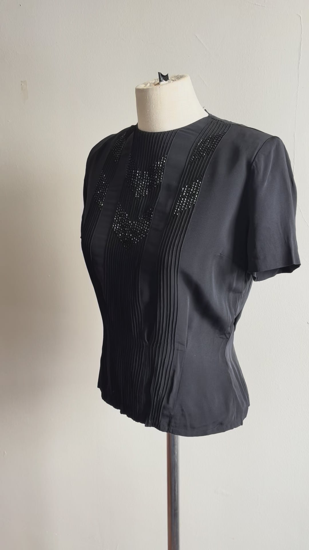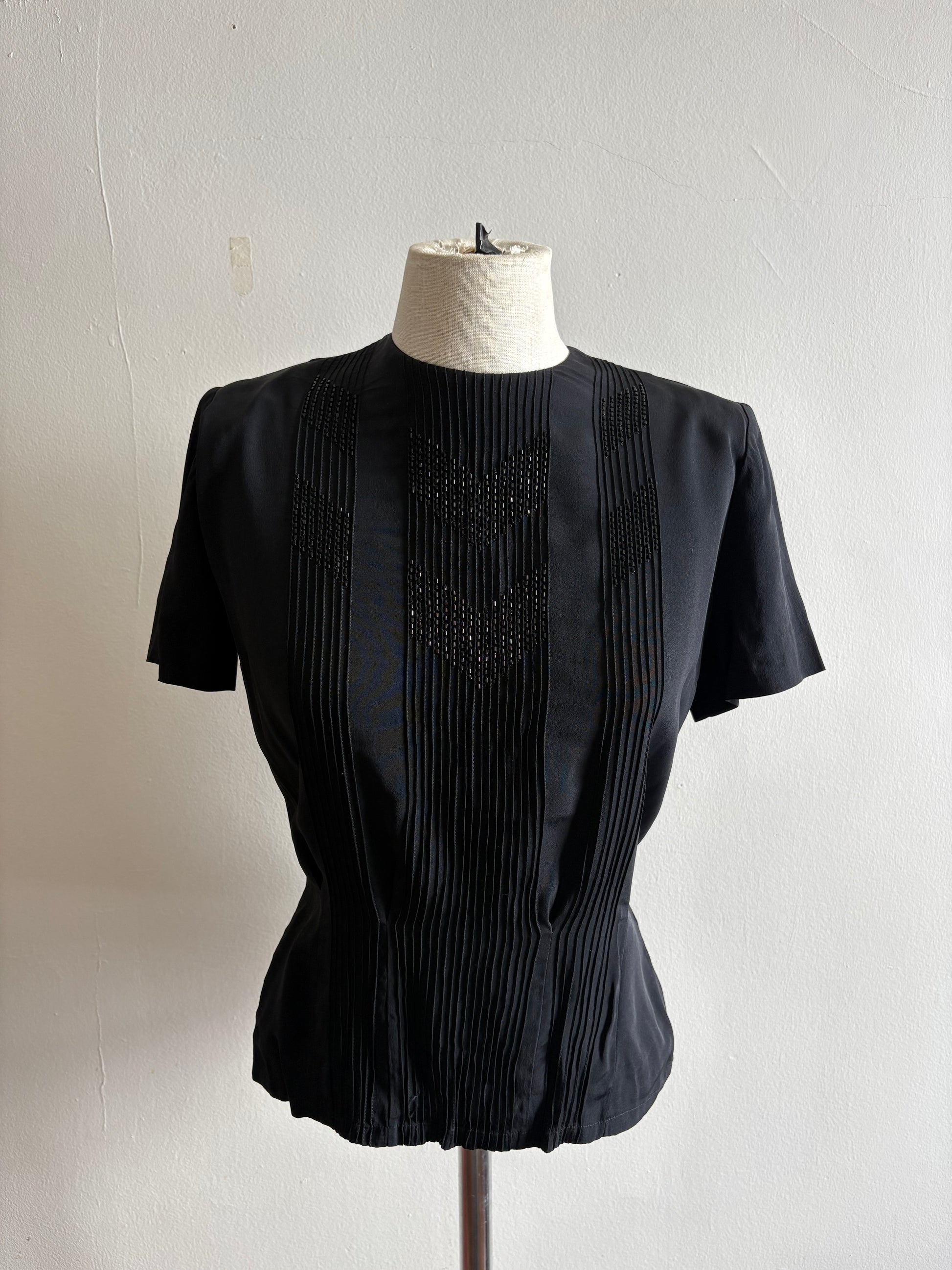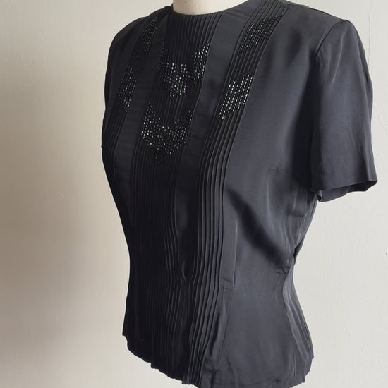 Vintage 1940s Hand Beaded Silk Short Sleeve Top