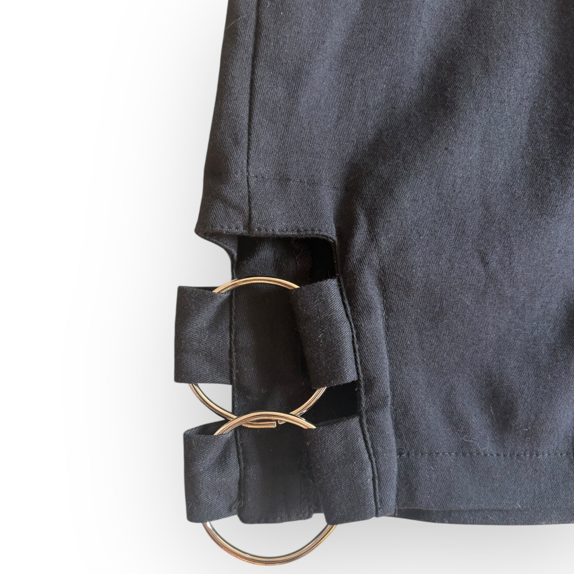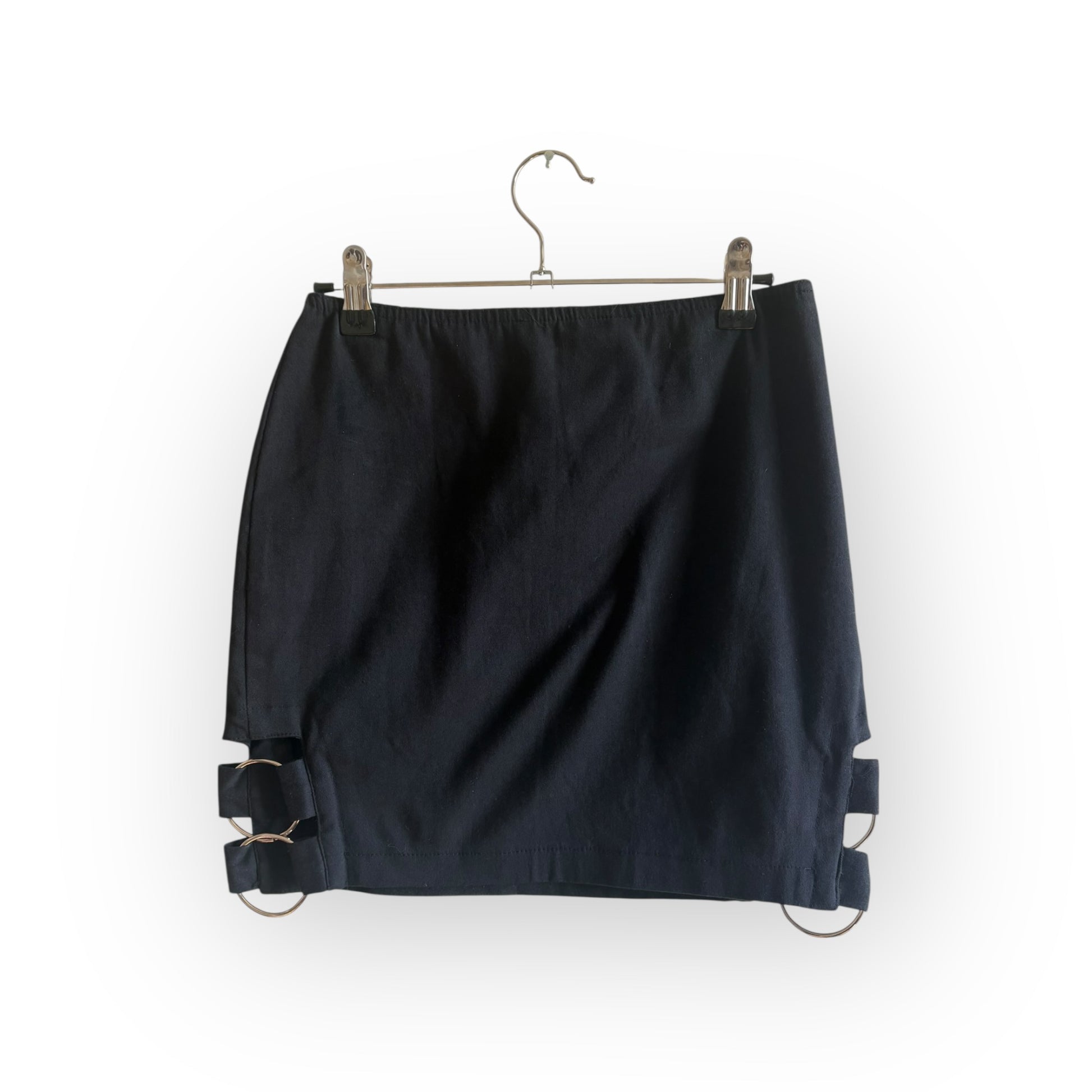 Vintage 1990s Black Stretch Mini Skirt with O Ring Detail